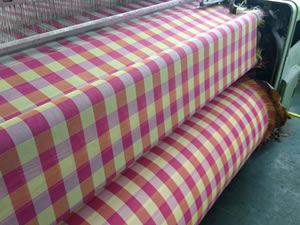 Warp through intelligent whole by the mechanism into weaving machine, without sizing, directly in the around the sword rod loom weaving caused by network., and then organize into the final product.